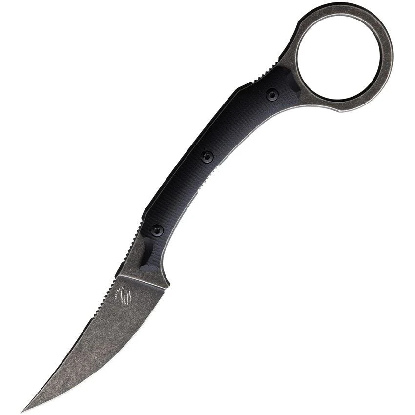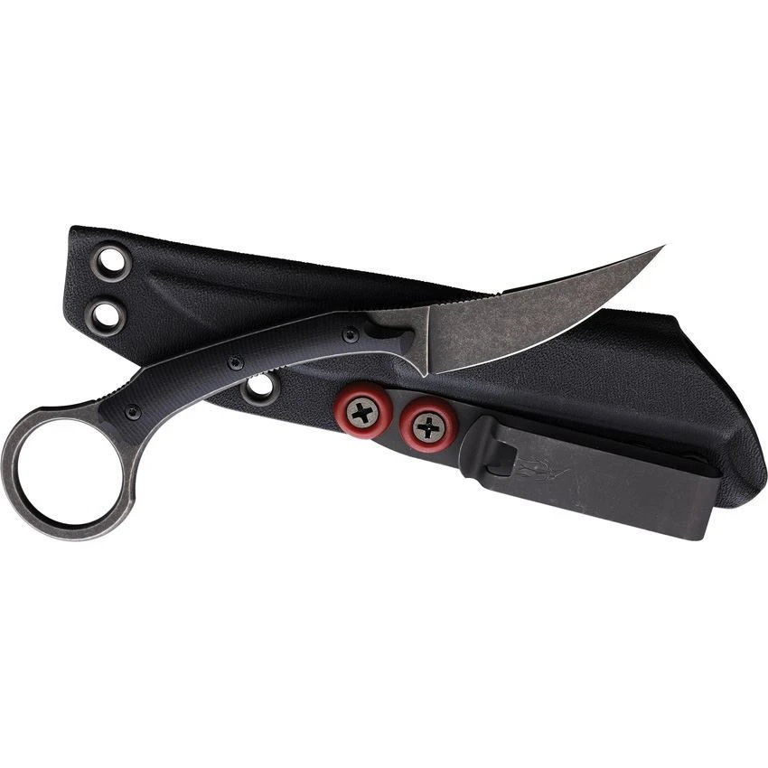 Model – BAS248. Bastinelli Creations Dopamine Fixed Blade. Dark stonewash M390 plain edge blade. 3D black G10 handle. Kydex sheath and discreet carry concept clip. Made in Italy.
