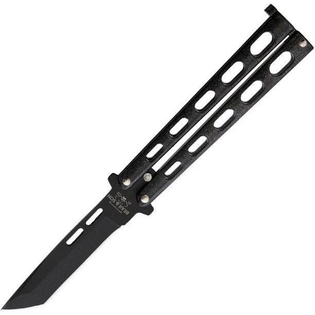- 3.38″ (8.59cm) black powder coated 1095HC steel tanto blade