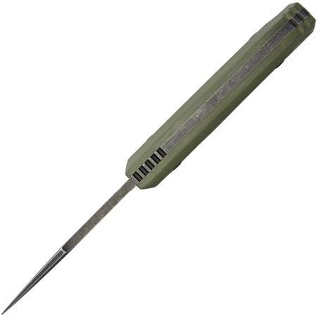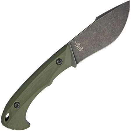 - BucknBear 12233P – Dark Piranha Black Stonewash Finish Drop Point Blade Knife with Green G-10 Handle