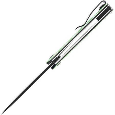 Model – KX2020T5. Kansept 2020T5 – Foosa Knife Snowflake. 4″ (10.16cm) closed. 3″ (7.62cm) black stonewash finish 154CM stainless blade. Green G10 handle. Extended tang. Pocket clip. Snowflake pattern handle artwork. Black nylon pouch. Boxed. Made in China.