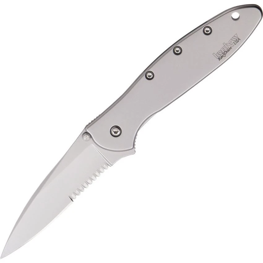 - Kershaw 1660ST – Leek Part Serrated Assisted Opening Framelock Folding Pocket Knife with Bead Blasted Stainless Handles