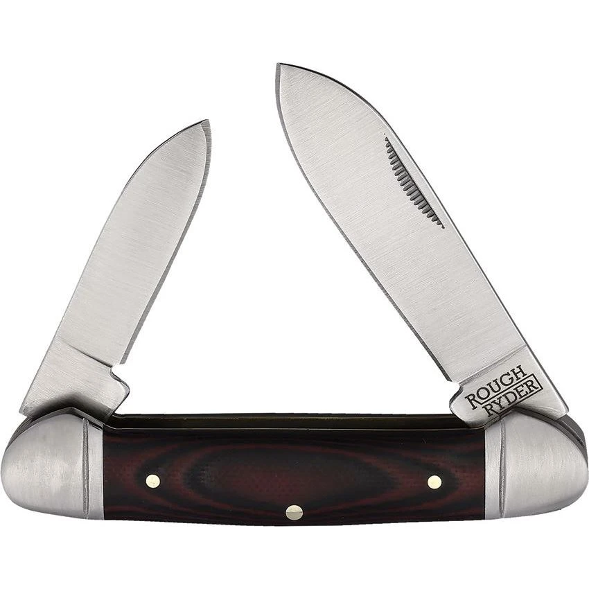 Model/Part Number – RR2297. Rough Rider Knives Canoe G10. 3.5″ (8.89cm) closed. Satin finish stainless spear and pen blades. Black and red G10 handle. Stainless bolster(s). Boxed. Made in China.