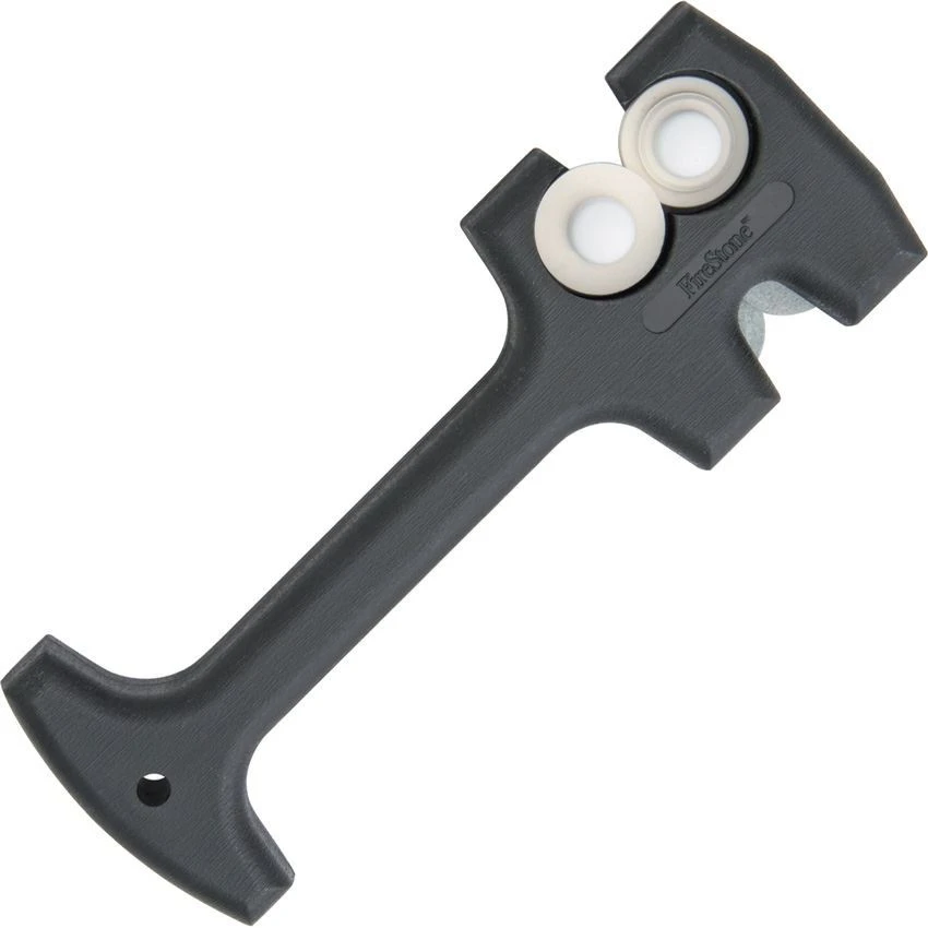 Model – FS1322. DiamondStone Sharpener. 2 Stage Knife Sharpener. 7.75 inch overall. Black polycarbonate housing with built-in handle and lanyard hole. Both sides of the blade are sharpened simultaneously with just a few strokes. Stones guide the blade to a perfect angle every time – eliminates guesswork and unevenly sharpened blades. Blue Diamond Stones set a new edge. White fine-grit ceramic stones give a final polish. Hang packaged. Proudly made in the USA.