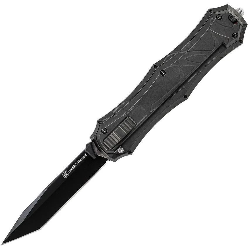 - Smith & Wesson OTF9TB – Otf Assist Finger Folding Pocket Knife with Black Sculpted Aluminum Handle