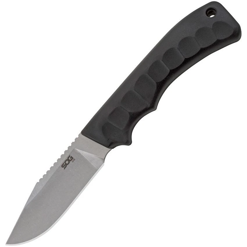 Model – SOGACE1001CP. SOG ACE1001CP – Ace Fixed Blade Stonewash Knife with Black Textured Rubber Handle. 8.75″ overall. 4″ stonewash finish 8Cr13MoV stainless clip point blade. Black textured rubber handle. Lanyard hole. Black nylon belt sheath with integrated line cutter. Clam packed. Made in China.