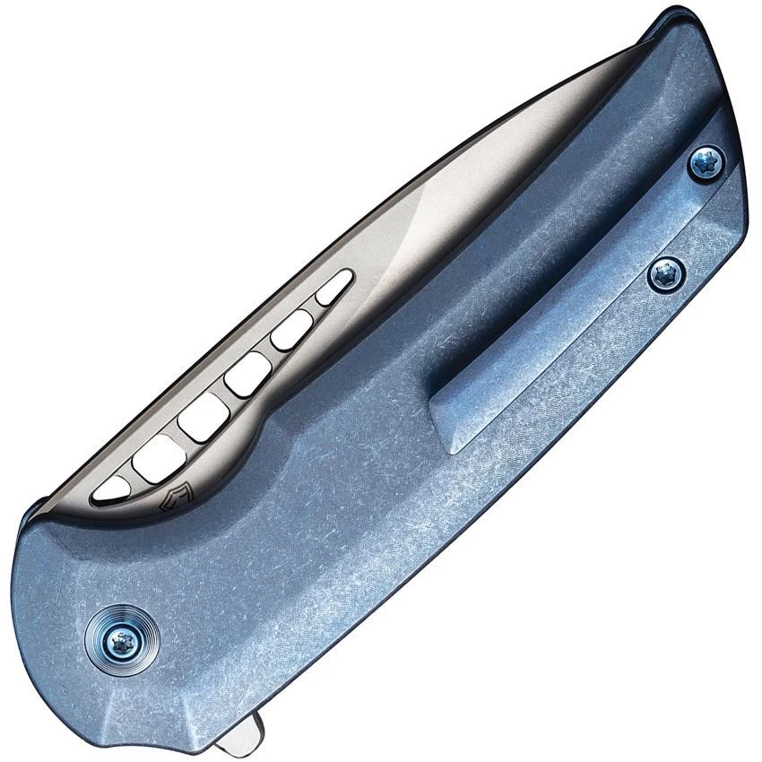 - Blue stonewash finish titanium handle
