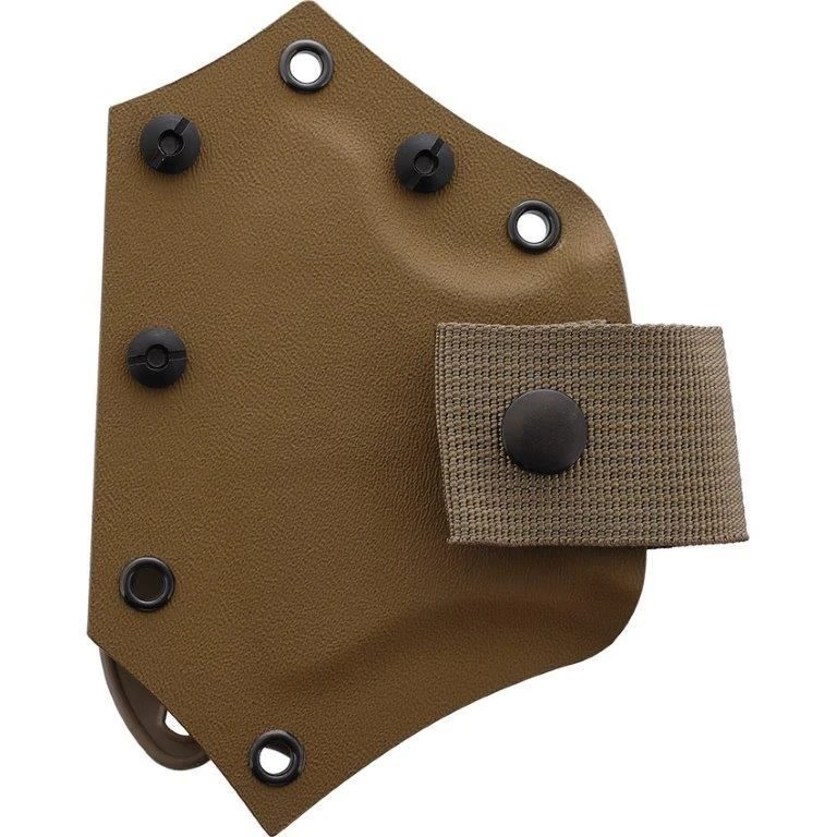 Model – WSKOB0115. Wild Steer KOBRA Hatchet. 11.81″ overall. 3.94″ X46Cr13 microblasted steel blade. Double handle: Coyote tactipren and paracord. Kydex sheath with blet attachment. Made in France.